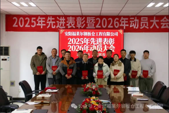 金鼓催征,春潮涌动。正月初九,安阳福莱尔钢板仓工程有限公司全体同仁齐聚一堂,隆重召开2025年先进表彰暨2026年动员大会,共同回望过往的奋斗足迹,擘画新一年的发展蓝图。
